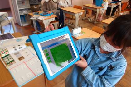 友だちや先生に出題しやすいようにタブレットにヒントを書き込みました。