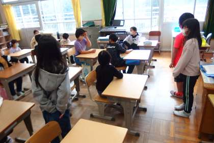 2年生と3年生の朝の会の様子です。