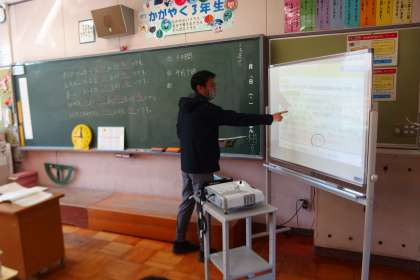 3月16日の東広瀬小学校(10) 公開日 2023/03/16 更新日 2023/03/16 活動の様子 3年生の算数の授業です。 デジタル教科書をスクリーンに映し出し、みんなで解き方を考えているところです。
