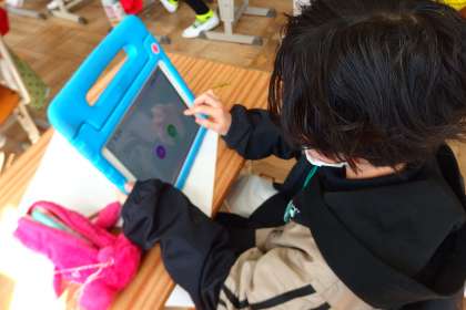 タブレットのアプリで復習をしている4年生です。