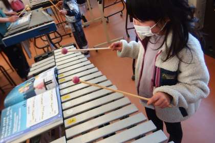 3月16日の東広瀬小学校(31) 公開日 2023/03/16 更新日 2023/03/16 活動の様子 1年生の音楽の授業です。 いろいろな楽器を使って合奏をしていました。 楽器をローテーションで扱い、一人一人が向いている楽器に出会ったり、特異な楽器を見つけたりしやすいような工夫がされていて、これも個別最適な学びとなっていました。