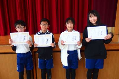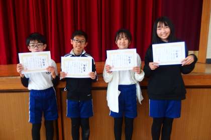1か年皆勤賞の4名の6年生です。
