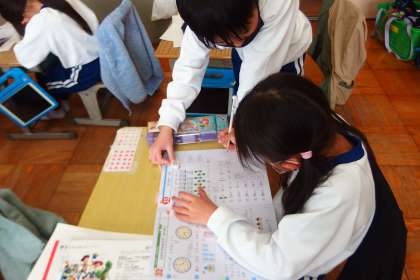 1年生の算数の授業です。 教え合い、学び合いの場面に出会いました。