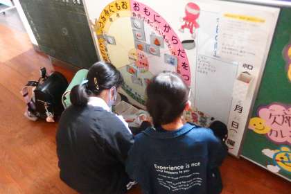3月23日の東広瀬小学校(1) 公開日 2023/03/25 更新日 2023/03/25 特別活動 給食の献立と栄養情報を記入している保健給食委員です。 毎日の給食の献立は、パソコンやタブレット、スマホで、本校ホームページのトップページのリンクからもみることができます。 3月の献立