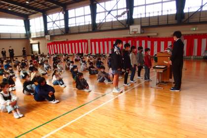 修了式に先立って、1か年皆勤賞と読書感想画コンクールの表彰を行いました。