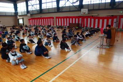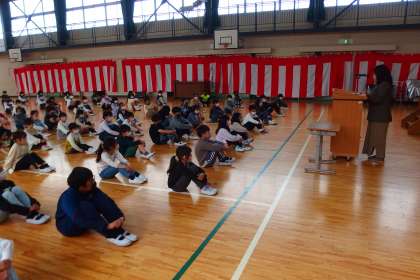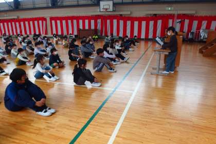 修了式を行いました。 代表児童がスピーチを行っているところです。