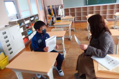 学年末の通知表を担任の先生から一人一人受け取りました。 AI