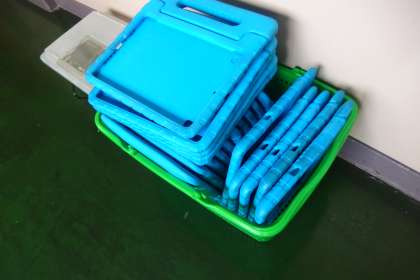 3月24日の東広瀬小学校(24) 公開日 2023/03/29 更新日 2023/03/29 活動の様子 4年生のタブレットからはずされたカバーたち。 4年生から5年生になると、タブレットのカバーが青から黒に変わります。