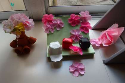 校内のあちこちの飾りつけが「入学おめでとう」バージョンに変わりつつあります。