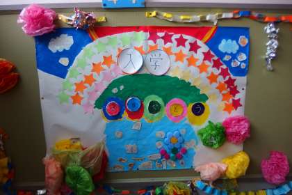 校内のあちこちの掲示物が「入学おめでとう」バージョンになっています。
