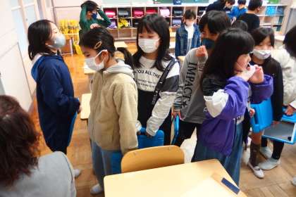 健康観察を終えてタブレットを一度片付ける3年生です。