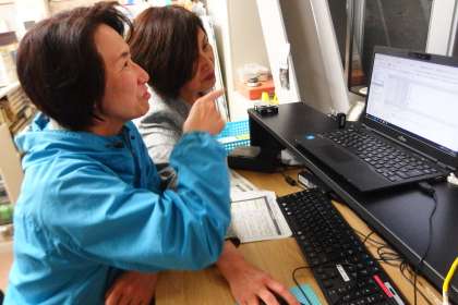 写真は、システム操作方法の習熟のために練習をしている校長と教頭です。