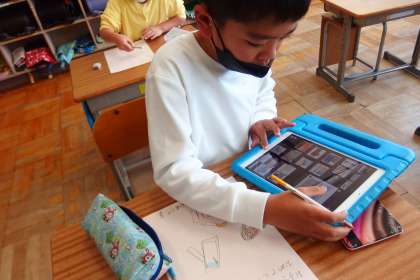 1年間の目標や1年後の自分の姿を書き込んでいました。 その際にタブレットを参考にしていました。