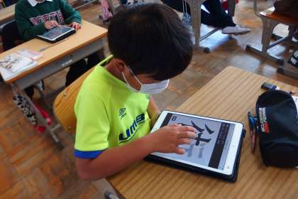タブレットを使って復習をしている5年生です。