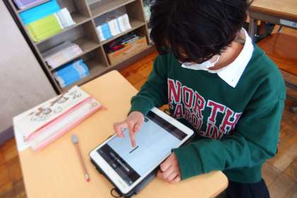 タブレットを使って復習をしている5年生です。
