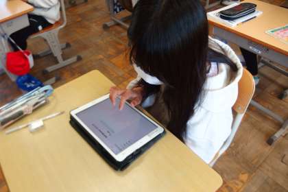 タブレットを使って復習をしている5年生です。