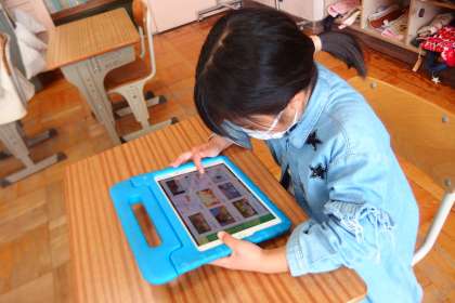 タブレットのアプリで復習をする4年生です。