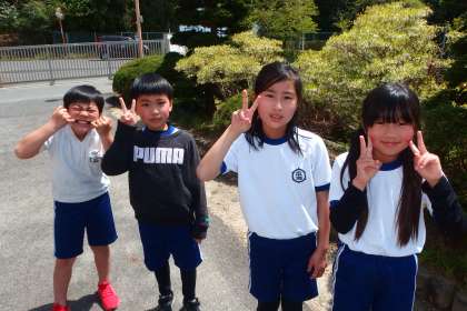 4年生が教室掲示に使うためのグループ写真を撮っていました。