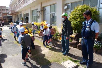 広サポ(広瀬っ子サポーター)の方や駐在所の警察官の方が、下校時の付き添い、見守りをしてくれました。