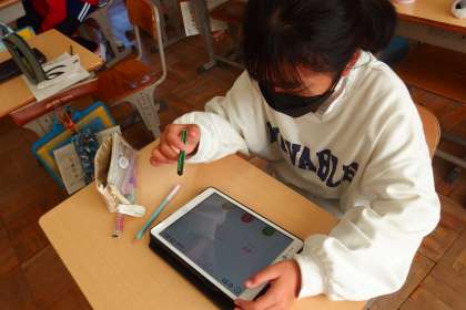 今年度も学習用タブレットパソコンを活用して、個別最適な学び、協働的な学びをより一層推進していきます。