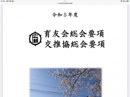 育友会総会 要項 公開日 2023/04/22 更新日 2023/04/22 PTA活動 保護者のみなさま、令和5年度育友会総会及び交通安全推進協議会総会の要項をアップロードいたしました。 ID、パスワードが必要です。 以下のリンク先から、ご覧ください。 育友会総会要項
