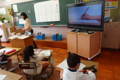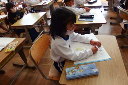 4月17日の東広瀬小学校(26) 公開日 2023/04/18 更新日 2023/04/18 活動の様子 1年生の国語の授業です。 タブレットから映し出されるお手本を参考にしながら、鉛筆の持ち方をおぼえています。
