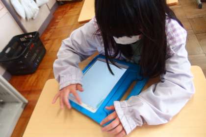 学習用タブレットのアプリで復習をしているところです。
