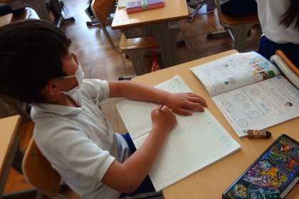 2年生の算数の授業です。 お互いの考えや解き方をシェアし合う協働的な学びの姿が見られました。