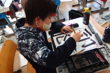 4年生はタブレットを器用に使いこなしますが、筆遣いもとても上手です。
