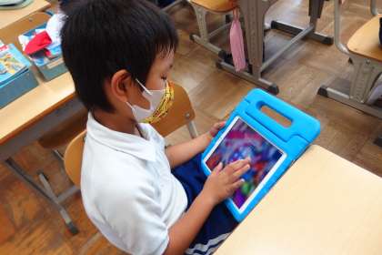 今年度も学習用タブレットパソコンを活用して、個別最適な学び、協働的な学びをより一層推進していきます。