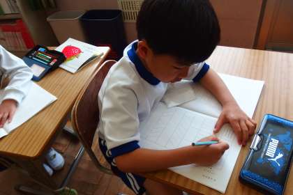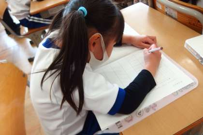 1年生の国語の授業です。 引き続き、正しい鉛筆の持ち方を学んでいます。
