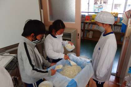 給食の配膳の様子です。
