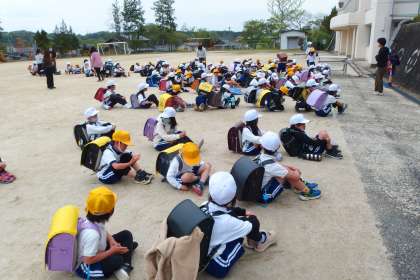 行事の関係で運動場での下校になりました。
