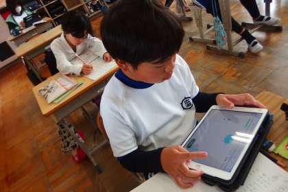 5年生の算数の授業でタブレットを使っているところです。