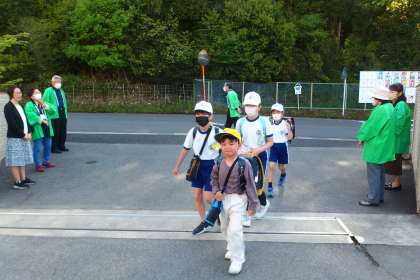 民生委員、児童委員のみなさまが登校時にあいさつ運動をしてくれました。