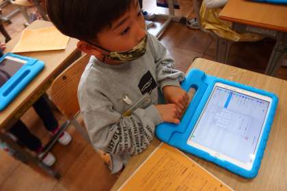 1年生がタブレットの利用を開始しました。