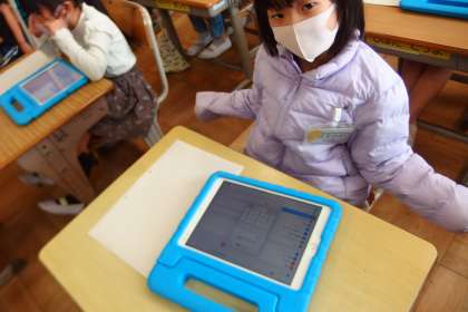 1年生がタブレットの利用を開始しました。