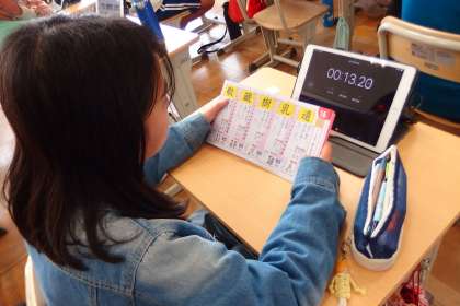 漢字の書き方練習をするときに、タブレットをタイマーとして使っている6年生が多いです。