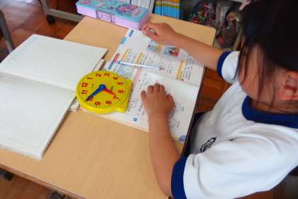 いまはデジタル表示で時刻を表すことが多く、長針、短針のあるアナログ時計が苦手な児童が増えています。