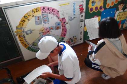 給食の献立や栄養の情報を記入してくれている保健給食委員です。