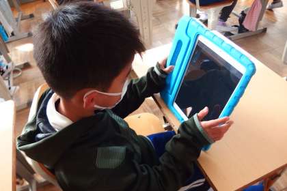 今年度も学習用タブレットパソコンを活用して、個別最適な学び、協働的な学びをより一層推進していきます。