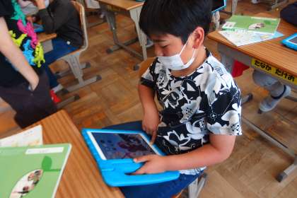デジタルドリル(Qubena)に取り組む4年生です。