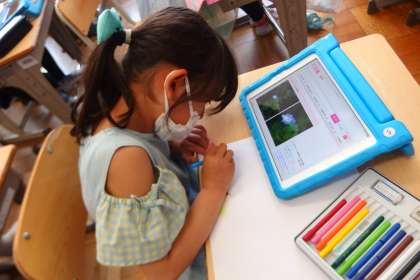 それを教室で画用紙に描いています。