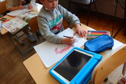 それを教室で画用紙に描いています。