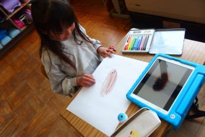 4月22日の東広瀬小学校(41) 公開日 2023/04/24 更新日 2023/04/24 活動の様子 2年生の生活科の授業です。 屋外で見つけた春をタブレットで撮影しました。 それを教室で画用紙に描いています。