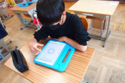デジタルドリル(Qubena)に取り組む4年生です。