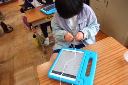 デジタルドリル(Qubena)に取り組む4年生です。