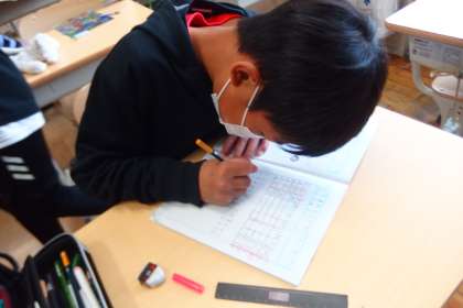 6年生の算数の授業です。 教え合い、学び合いの姿がありました。