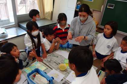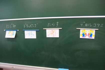 4年生の図工の授業です。 絵の具を使った新しい描画方法を学んでいました。