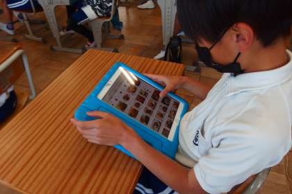 タブレットで復習をしている4年生です。
